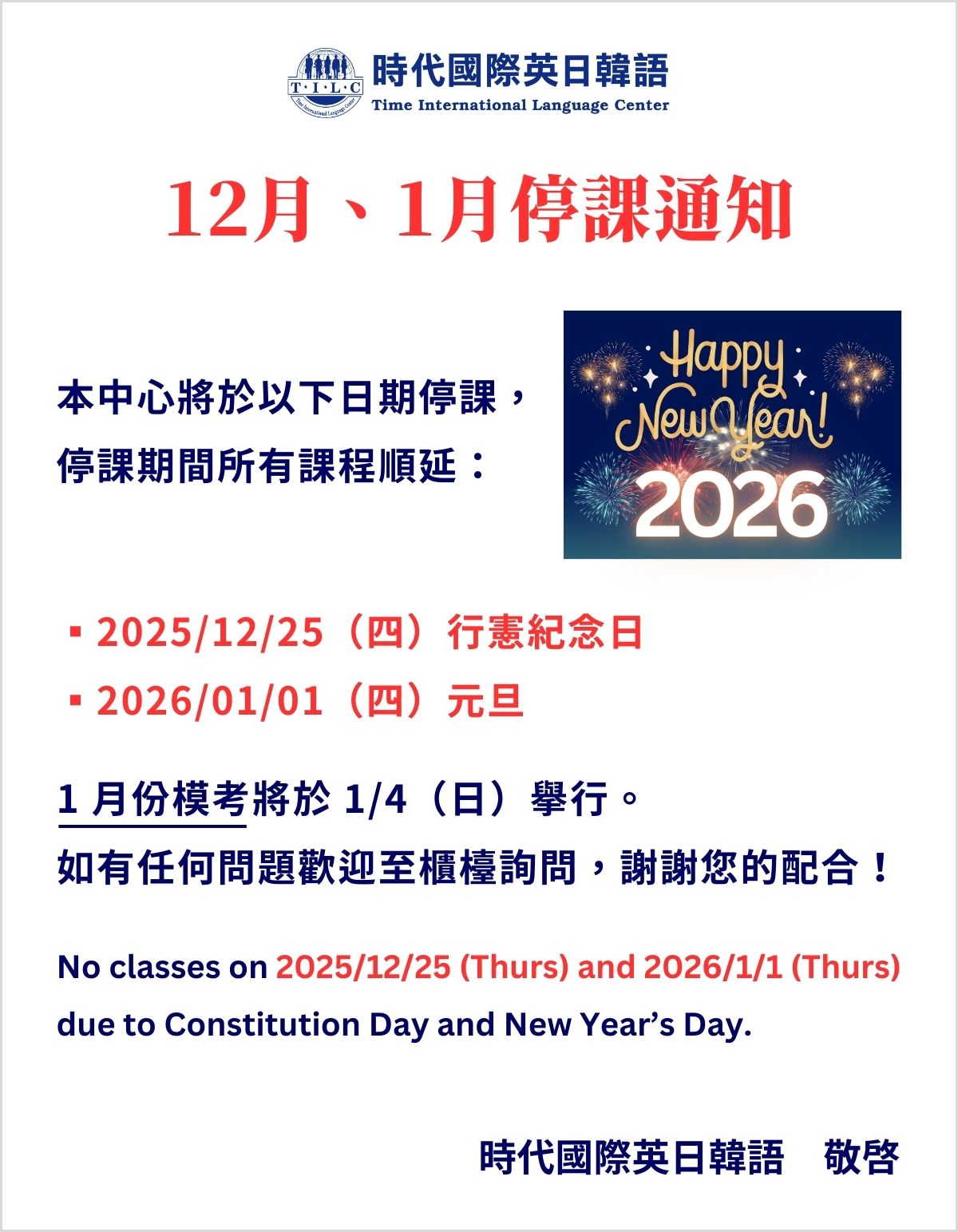 本中心將於以下日期停課一天,當日所有課程將順延一次: